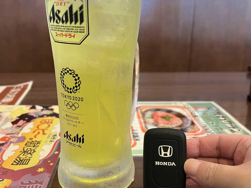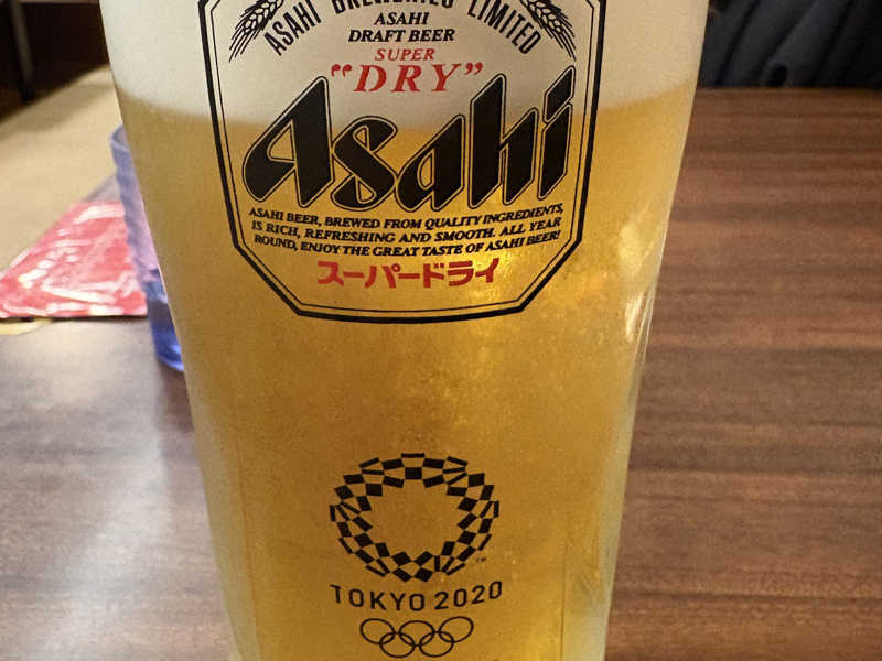 ご飯じゃないけど。サウナ途中の休憩で飲んだアクリ。デカいジョッキで大満足💯