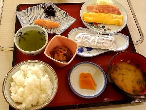 隣接ホテルの朝食。手作り三杯酢が美味し。