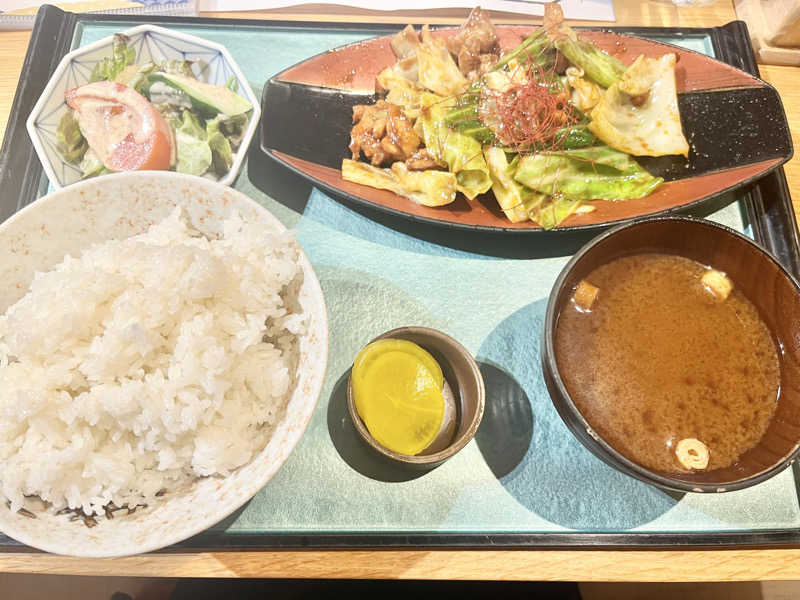 締め🍺 併せて頼んだ生姜焼きが濃い味付けで美味しい😋