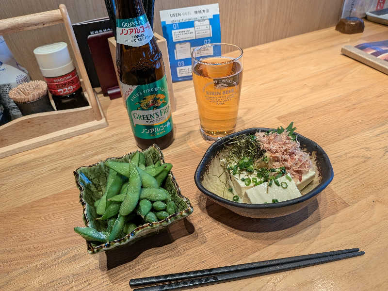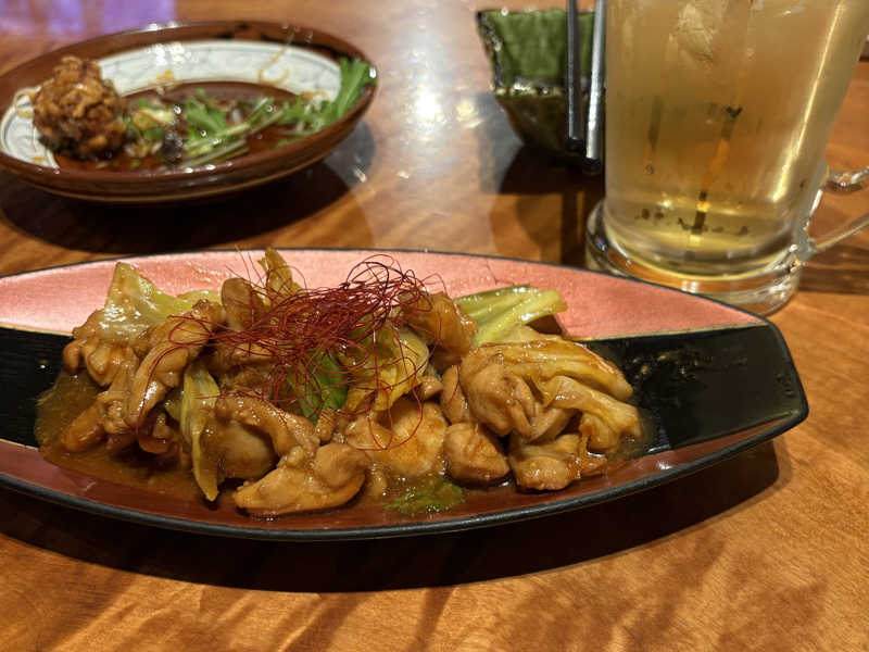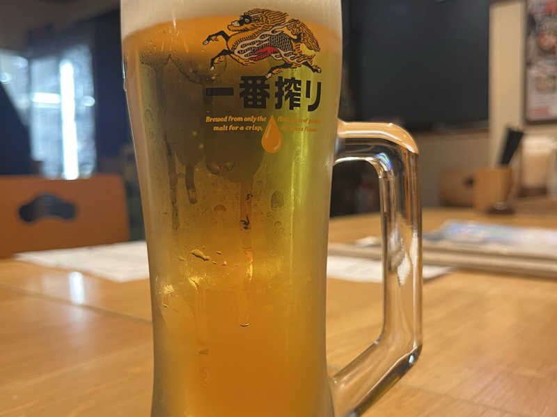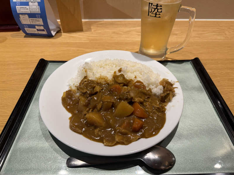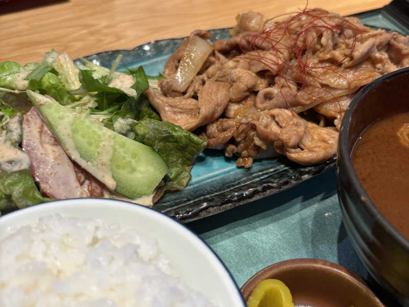 締め🍺 併せて頼んだ生姜焼きが濃い味付けで美味しい😋