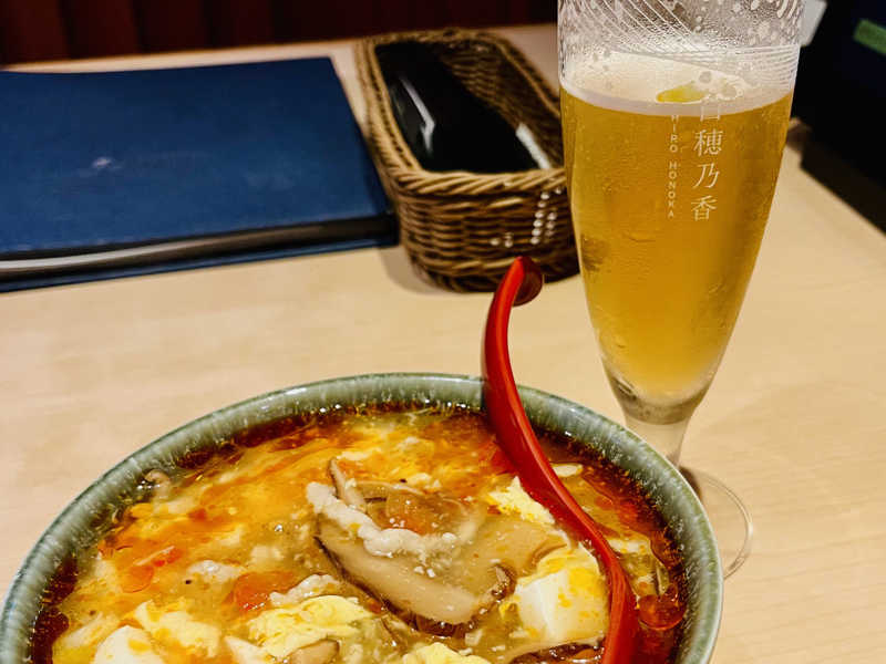 トマトが入ってると辛みが和らいで良い。慌てて食べるとむせます。麺を先に食べて餡かけの具で呑む。