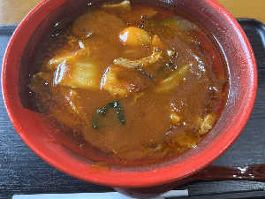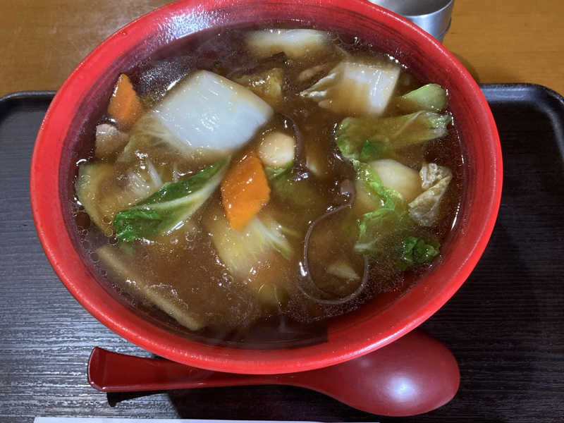 皆んな大好き広東麺、とろみが後半も残っていてスープが熱々よん、うめーっ