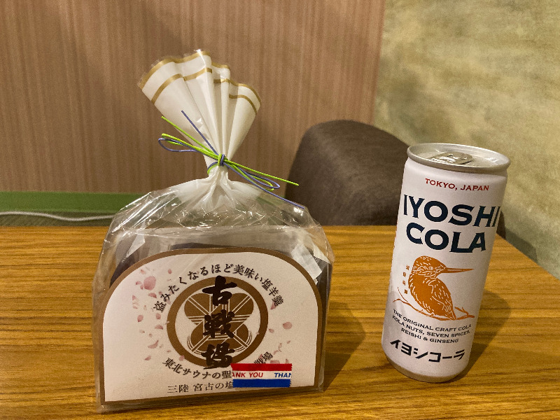 サウナ後はやっぱりイヨシコーラ!塩羊羹は職場での小腹満たしに。値段も手ごろで良いです。