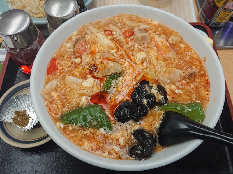 サウナ後の代謝120%状態で2辛食べたら汗だくになります。でもめちゃうまいです。