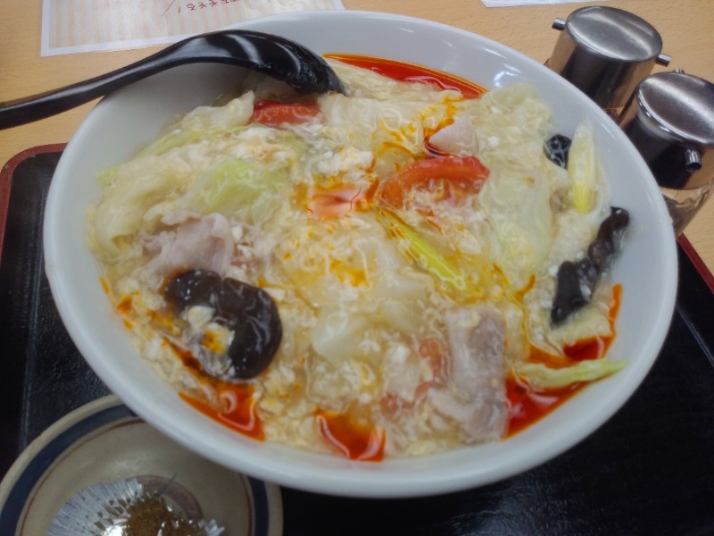 小盛でも結構しっかり。 お酢と辣油がついてくるので好みの味に調整出来ます。