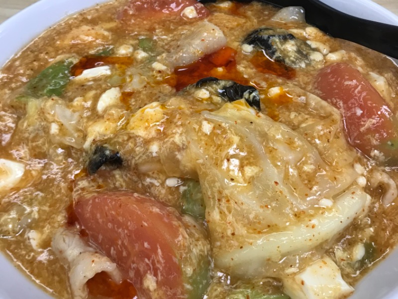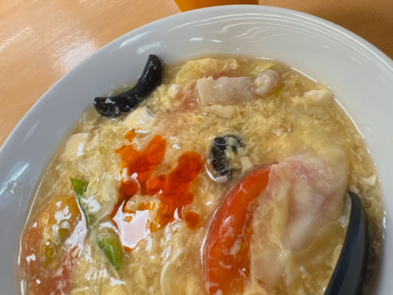 思ったより辛い、酢を入れて丁度よい辛さに。なかなかボリュームもあり🙂