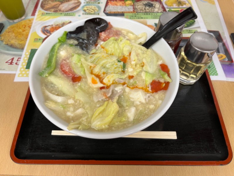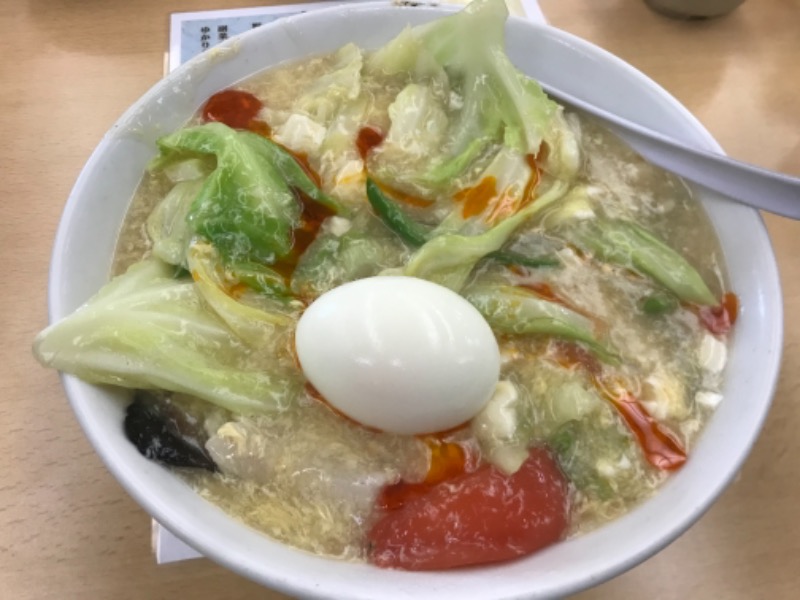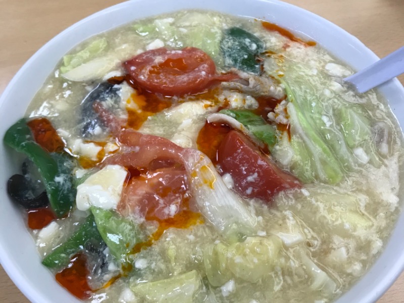 キャベツ多め。 あんがしっかりめ。 お酢とラー油と胡椒をジャンジャン入れて食べるのが好き。