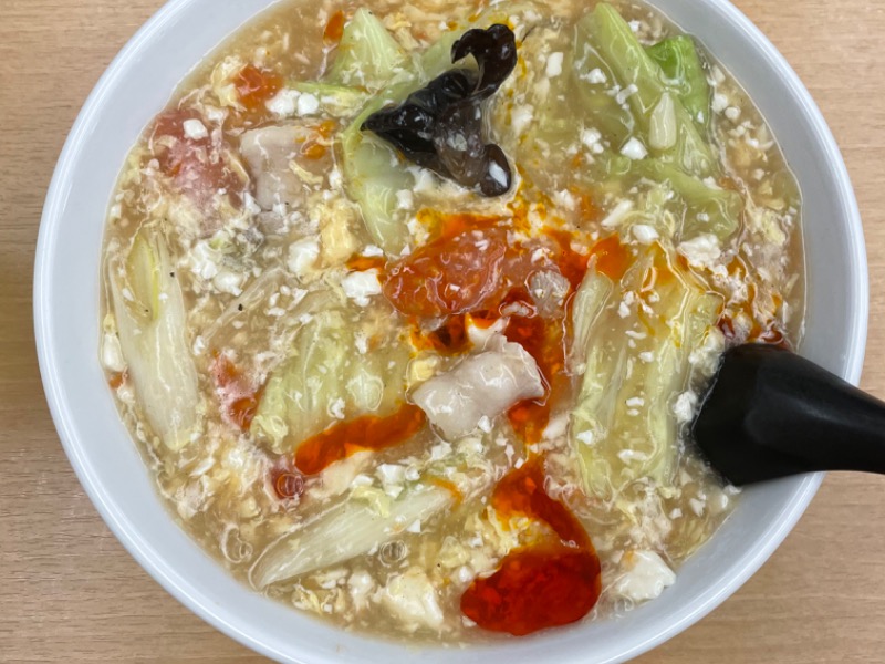 見た目よりも食べ応えがあるのがトマト酸辣湯麺、食べ終わるのに30分かかりました😅