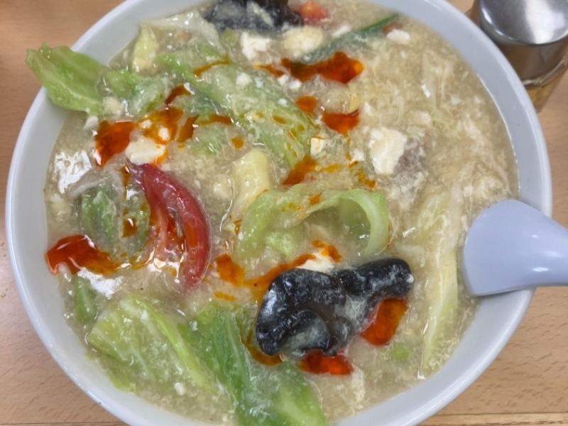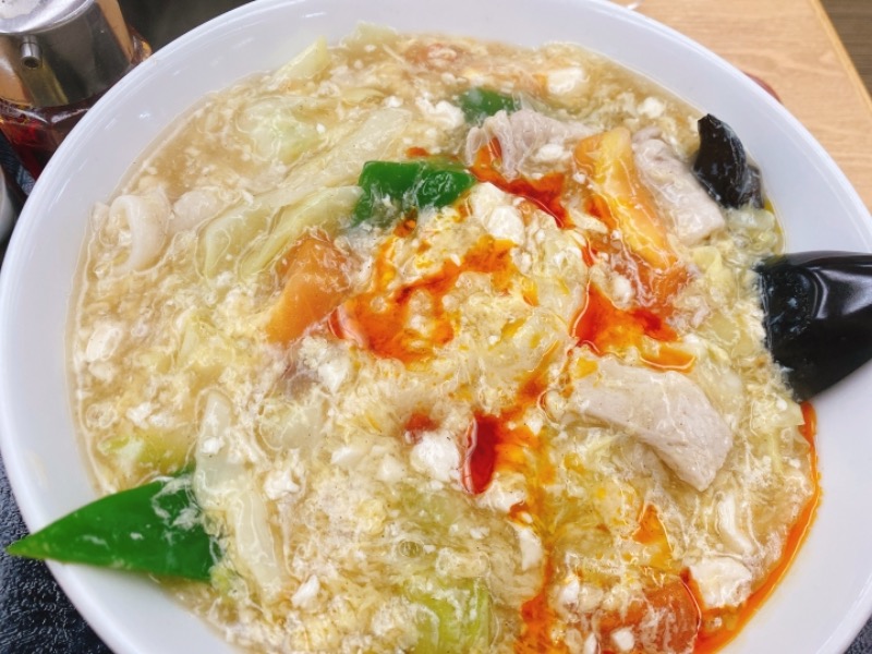 0辛でも辛い🥲 白い服で食べたら案の定ラー油を飛ばしたので館内着に先に着替えたらよかった💦