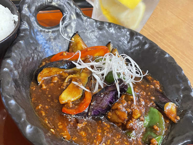 秋茄子たっぷり、大きめのが一本くらい。甘辛な挽肉餡はレンゲで全ていただくべし!ご飯もお酒も進みます!