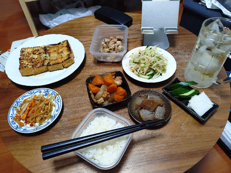 夏野菜と肉厚の太刀魚。サウナ後のうまい酒のアテには旬の食材ですね。メガハイボールと共に!