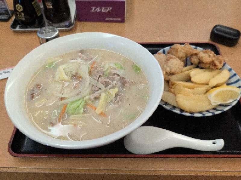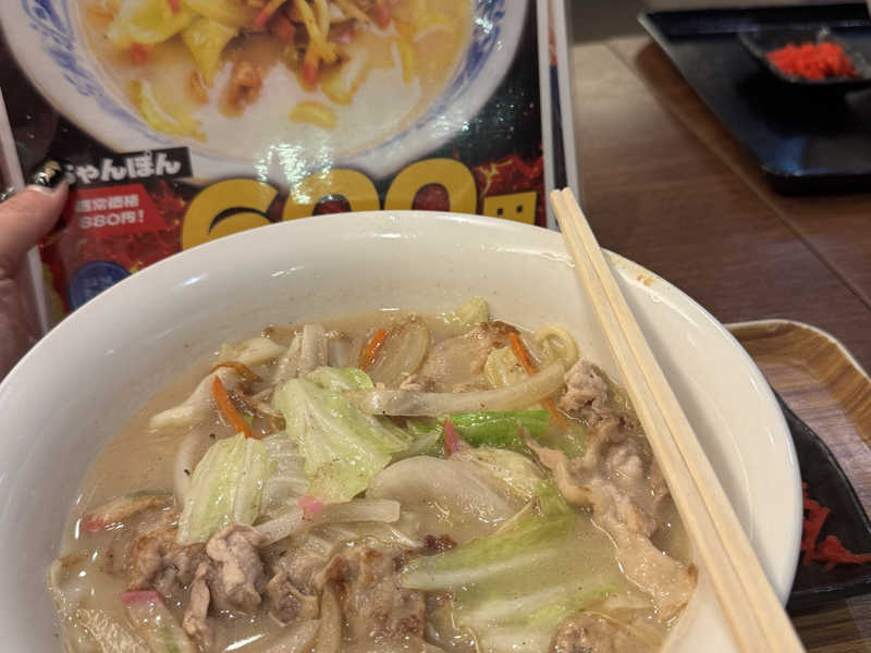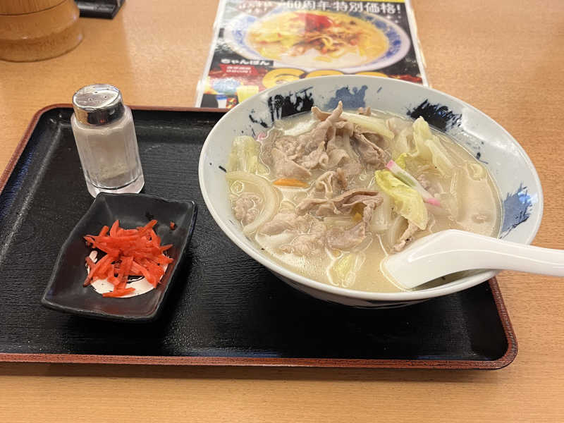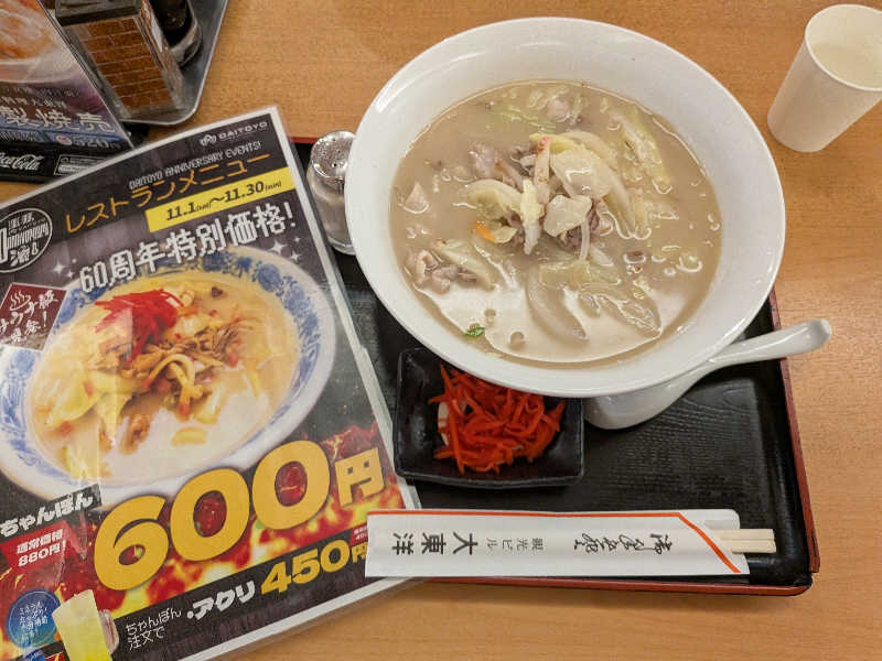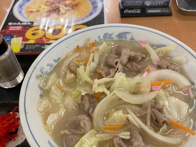 60周年特価で600円の名物「ちゃんぽん」。あっさりスープともっちりした麺がサ飯にぴったり😋