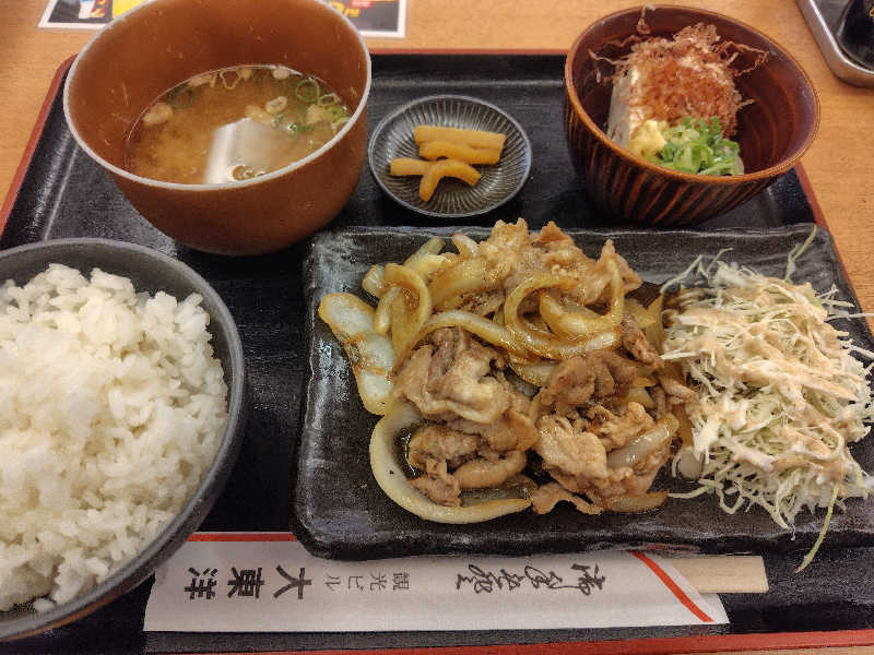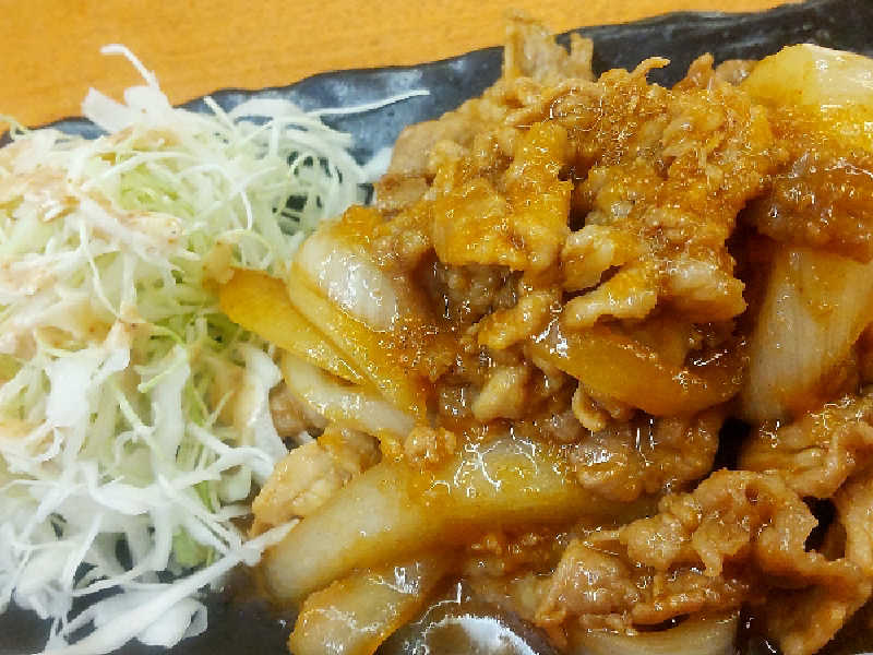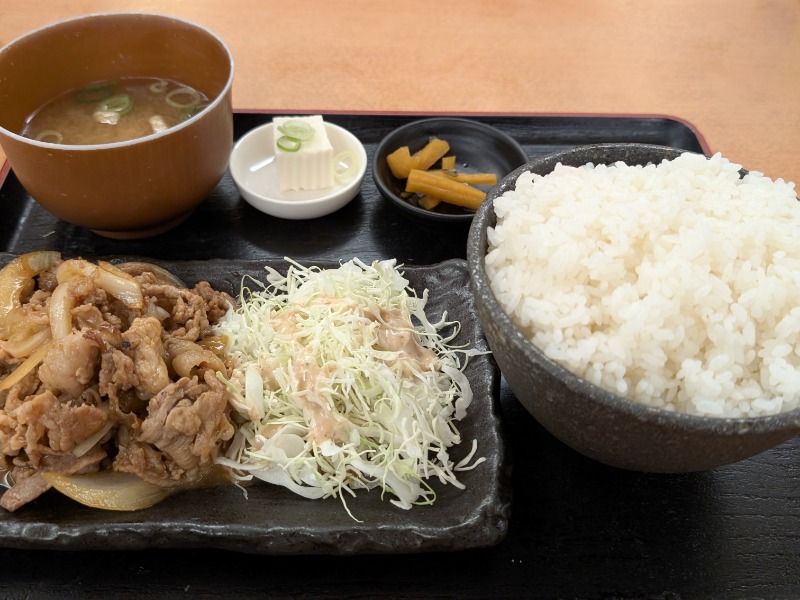 ご飯大盛りの迫力がイマイチ。しょうが焼きは素晴らしく美味い!