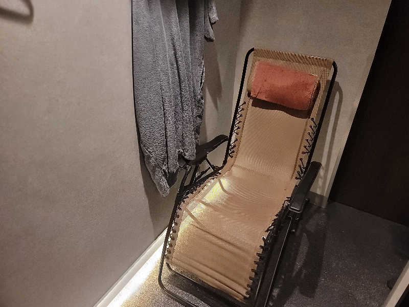 冷たいシャワーでしっかり冷やしてリクライニングチェアで整います。窓が開けばいいのですが多分開きません。しっかりエアコンで部屋を涼しくしておくことをオススメします👍