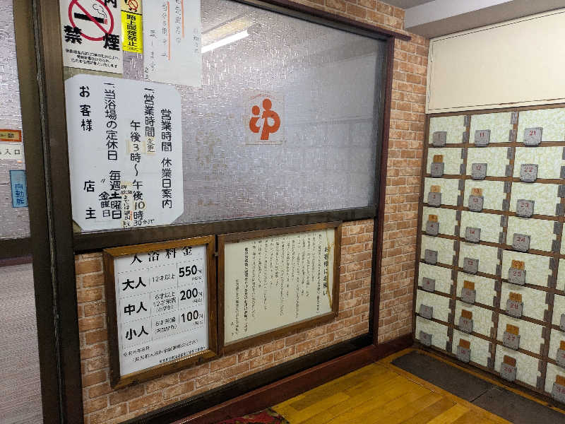 靴箱も渋い。受付でお風呂とサウナ利用を伝え、1,000円を払いバスタオルを受け取ります。脱衣場も渋く、サウナは脱衣所の横にあります。サ室の入口近くにフックがNo.1〜10まであり、10番にサウナハットとバスタオルを掛けました。