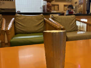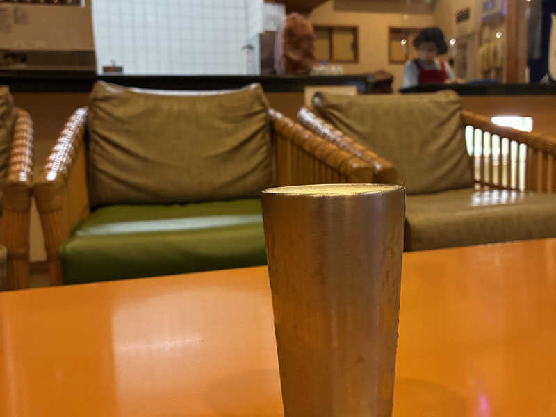 タンブラーで出してくれる。 風呂上がりにグイッとやるのにちょうどいいサイズ。