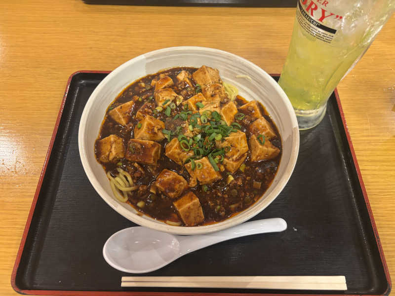 四川麻婆と中華麺の相性がgood 温玉を乗せて頂きます🙏