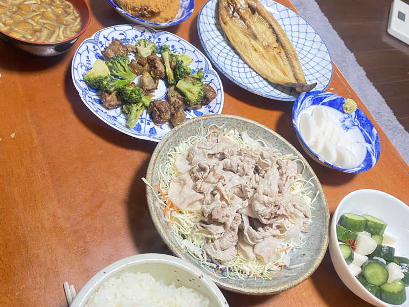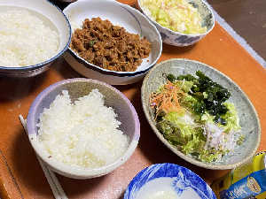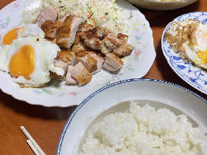 黒ダレ、ご飯、キャベツ、三位一体👍