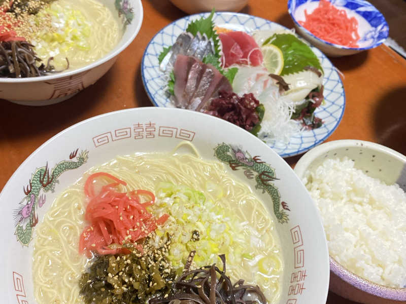 自宅飯🍚博多豚骨ラーメンと刺身で一杯❤️ 1投稿