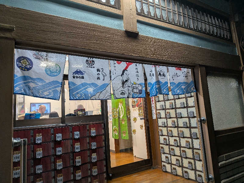 気持ちよく歩き鶴の湯さんに到着。趣のある外観に期待が高まる。料金は驚きの550円(サウナ込み)