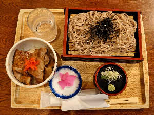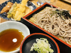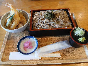 冷たいそばと天丼のセットをチョイス。 間違いない。
