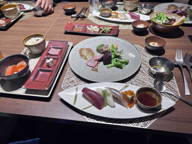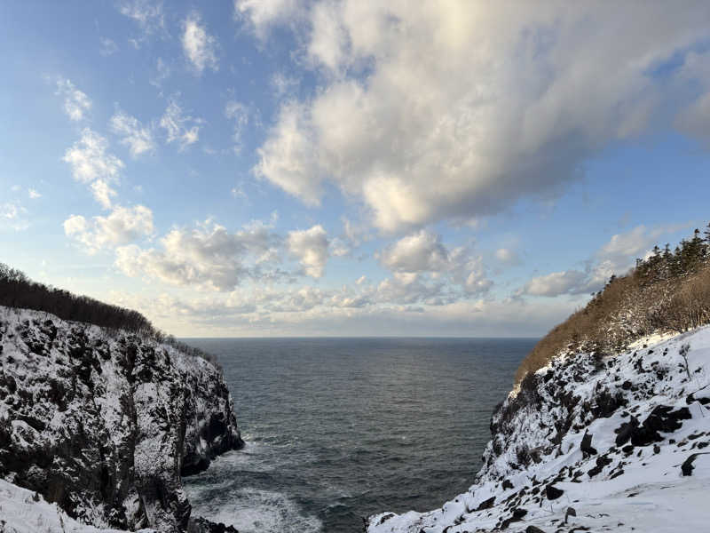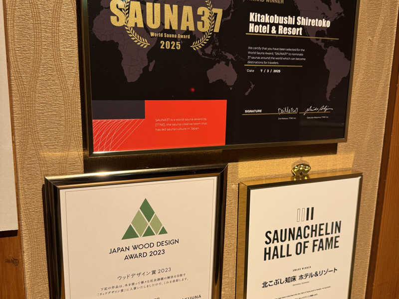 今回の旅の最初の目的地は知床です!まずはスノーシューで原生林を歩いてきました!自然の素晴らしさを感じたいい体験でした🌳もちろんカラダは冷えましたので、まずホテル着いたら大浴場にいきます!冷えたカラダを温泉で湯通ししたあと、お待ちかねのサウナです🙌初日の夜はUNEUNAで、丸みが特徴的で石も含めて全体に優しい造りです😀流氷のBGMや薄明かりな感じが母なるサウナ感を演出してくれます🤱8分間隔のオートロウリュなので、湿度もいい感じで、2回あたるとラッキーな気持ちになります😆パッと明るくなる演出もいいですよね!セルフロウリュもでき、セルフも加えるとやばいあついです🫨しっかり汗だくになってキンキンの水風呂に入ります!そこからの屋上外気浴は星がキレイで最高ですが、なんせ潮風が寒いため、下に降りて足湯外気浴に切り替えました😌露天風呂は風がないため、足湯なしでも座って気持ちよくととのえます!内気浴のベッドもいいと思います!露天風呂も、内風呂もどちらも気持ちよく長湯できます♨️ハッカ水が置いてあり、スッキリありがたいです!ご飯食べた後も入れて満足して寝ます😪