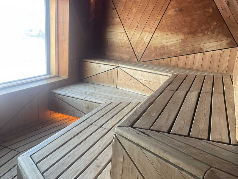 計算され尽くした室内の造り、窓の外に広がる知床の景色。熱だけでなく、視覚でもしっかりととのわせてくるのが凄さ。定期的なオートロウリュで土台をつくりつつ、セルフロウリュで自分好みの仕上げができる懐の深さ。蒸気が回った瞬間の空気感、たまりませぬ😇