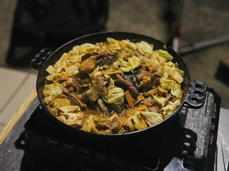 自宅BBQで、久しぶりのホルモン鍋。 ビールの無限ループ。