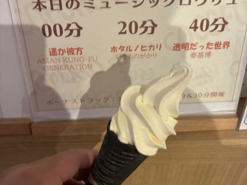 バニラは売り切れで桃のソフトクリーム 月曜20時以降は200円とお得