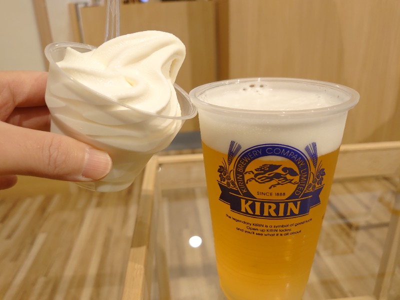 今夜は気分が良いので久々にW注文で🍺と🍦で乾杯🙌紙コップ🍺→プラスチックに変わりました。