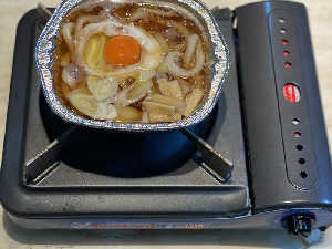 ガスコンロで雰囲気だけ出した、お安いうどんです。