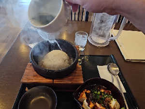 スープロウリュしてから シン·石焼き麻婆豆腐ライス!(湯花楽秦野か!)