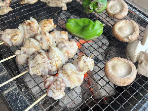 ビール飲みながら串打って焼く。