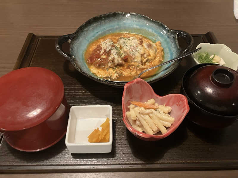 トマトとチーズと玉ねぎとお肉の素敵なハーモニー。せめてご飯だけでも、ヘルシーに気をつけてる風。