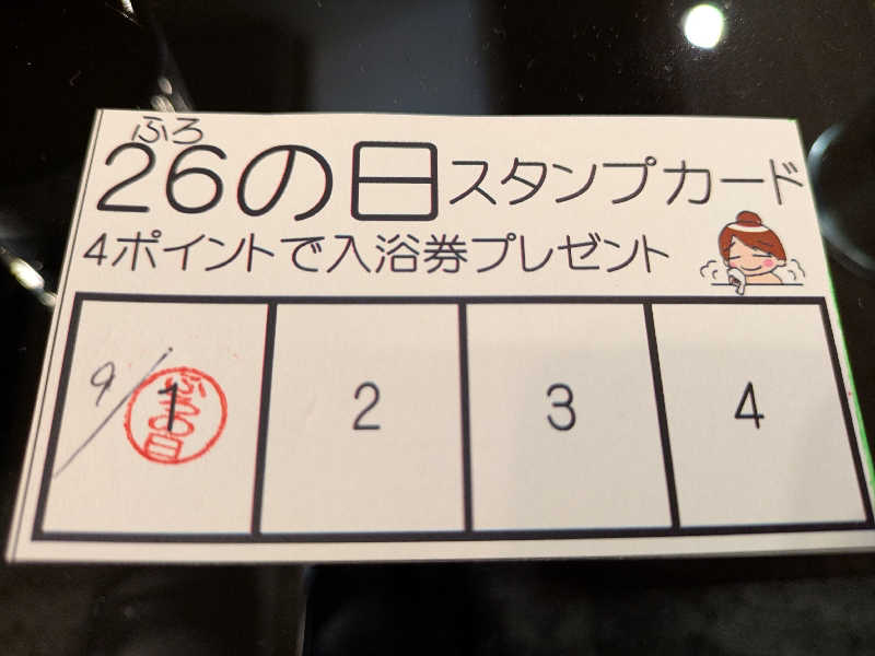風呂の日イベントが復活したということで、スタンプカードもらえました。26日に提示すればスタンプもらえる♪