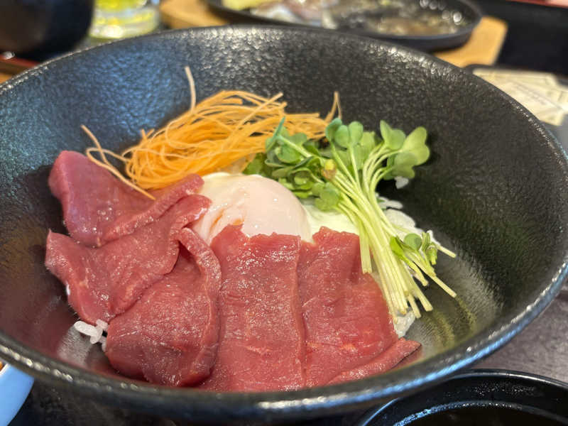 馬刺しに温玉でパワー全開😋