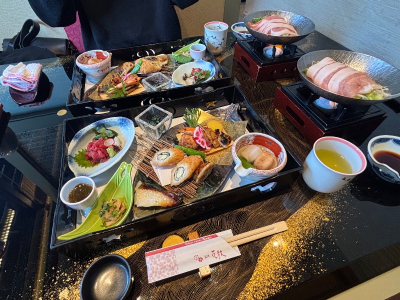 松花堂弁当と入浴のプランで予約しました。枝豆はサービス。ごはんも美味しいです。