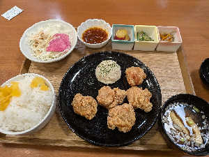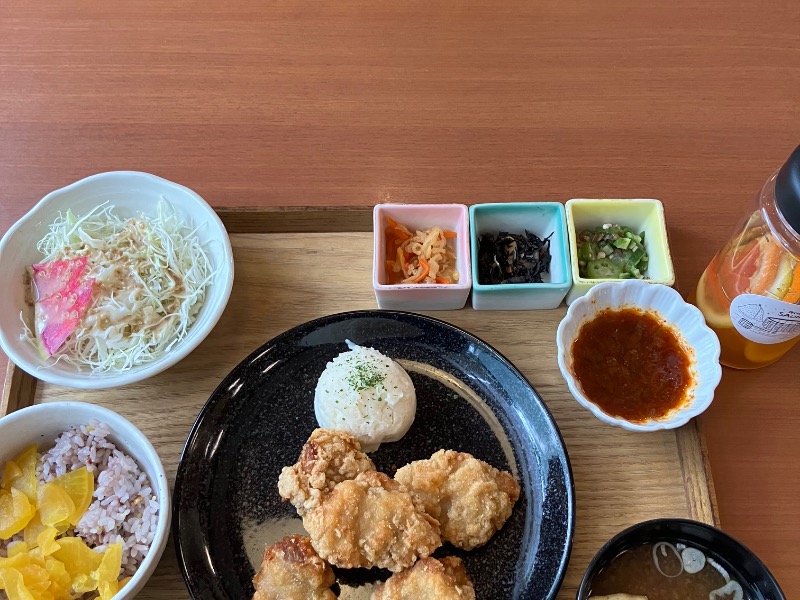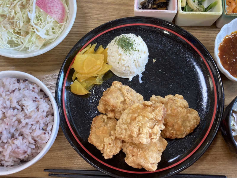 さっくさくの柔らかチキン美味しかったです!!小鉢も地味にうれしい☺️