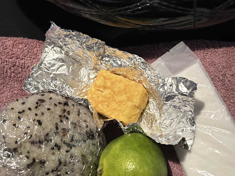 サウナに入った後なのか食べてると額に汗をかいてました💦