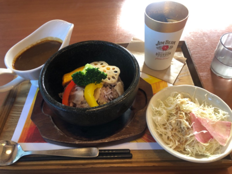 熱々ジュージュー! ご飯の量の割りにカレーが少なかった💧