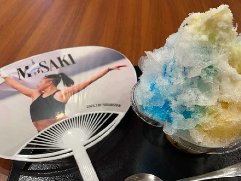 オカミとみさきさんをイメージしたブルーハワイとマンゴーに練乳かかってて美味しかった😆大きすぎだけど💧