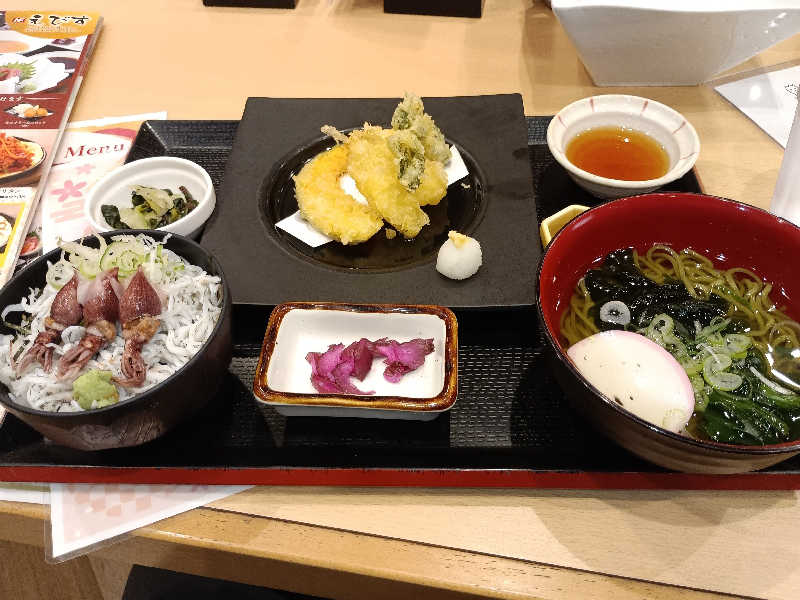 シラスとホタルイカのミニ丼 4種の天ぷらと茶そばの御膳