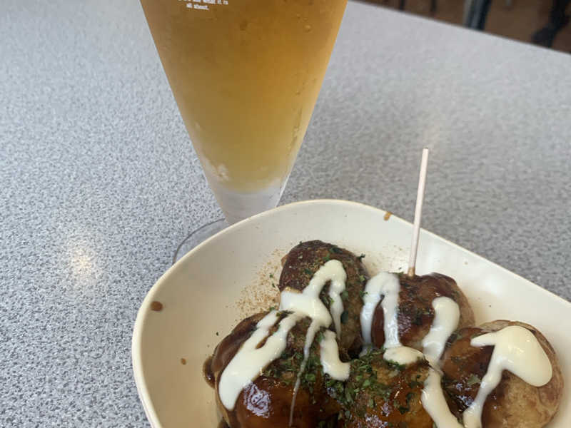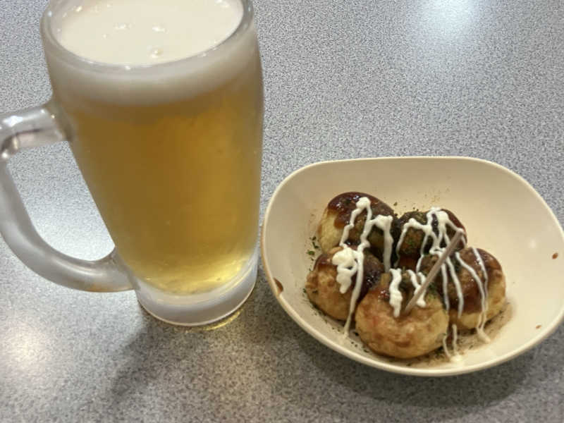 くせになる味😊生ビール🍺たこ焼き🐙もいただく😋