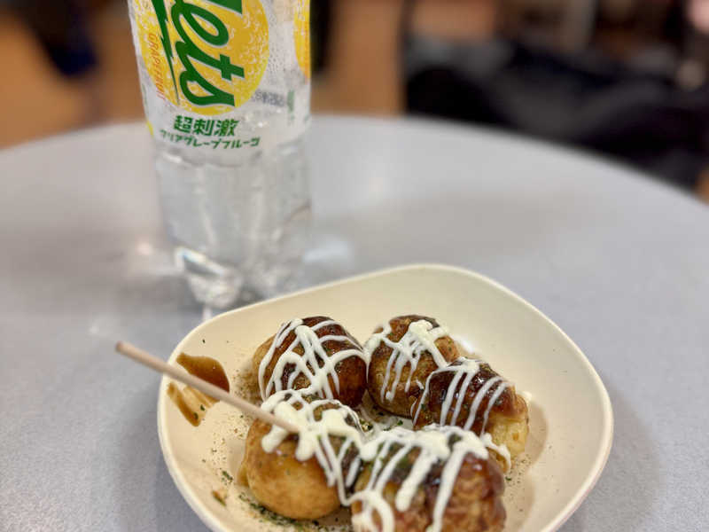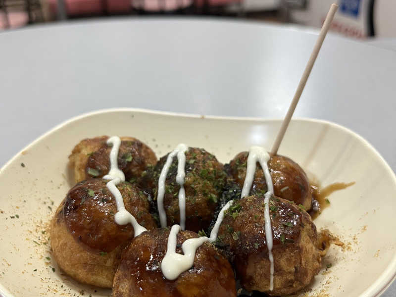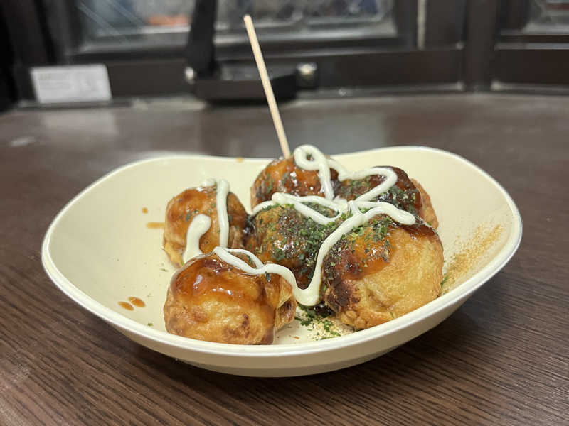 サウナ後にお祭り感な“たこせん”最高か♡たこ焼きのっけてガブっとな♪濃ソ〜スと甘マヨが悪魔的に旨っ❣️
