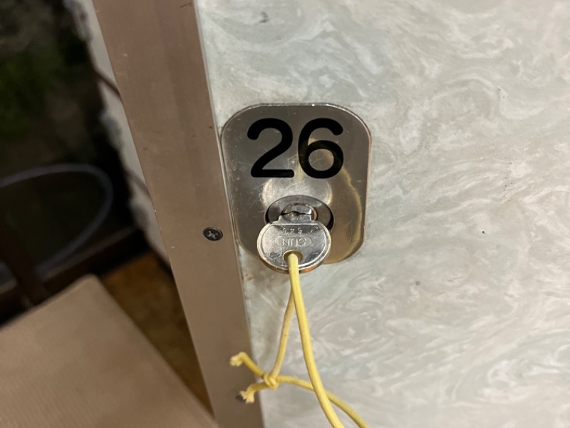 屋外がないが、サウナ利用者にはバスタオルを貸してくれるので、身体を拭いて腰に巻いて脱衣所の大きなベンチで涼むのが正解と導きだしました。