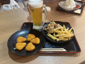 ビールセットは850円安い!!! ふくの湯の唐揚げ美味しい カマンベールチーズフライも安定。