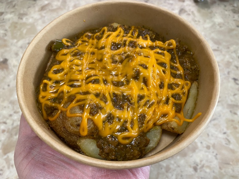 エストレージャ洸さん熱波師3周年特別メニュー。キーマ×チーズがじゃがフライの上に乗っていて美味い!