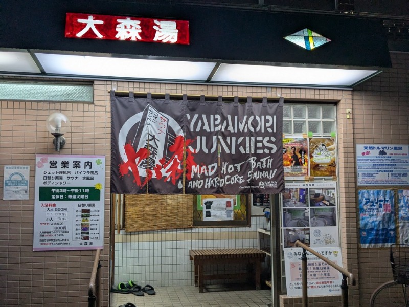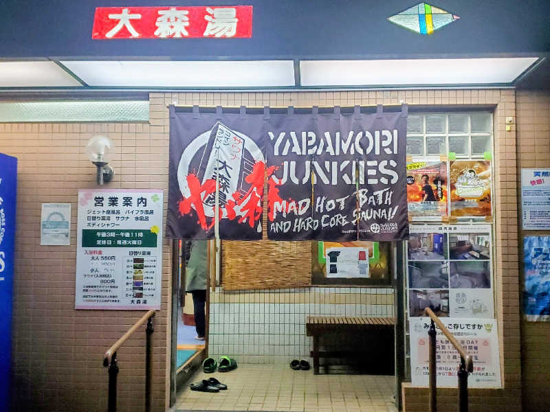 雨☔予報と知らず傘🌂を忘れてしまい濡れながら17:10に大森湯♨️さんに到着🚶