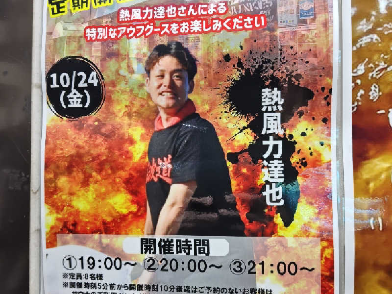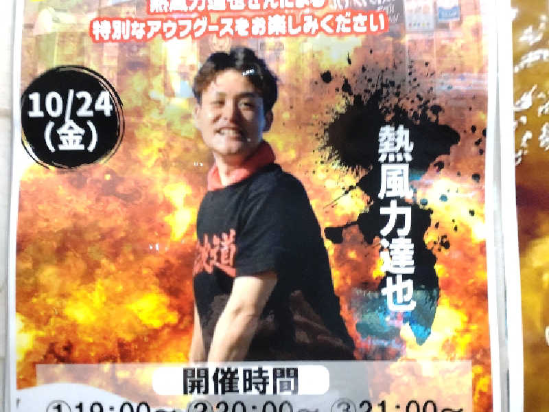本日のアウフグース担当してくださる熱風力達也さんが19:00からに向けてサ室内でウォーリューの調整をしてくださっている🔥下準備ありがとうございます🙇