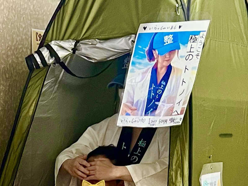 休みの日、夜は大森湯で熱風力達也さんのヤバ森アウフグース!20時回に参加しました。1セット入ってからこの日特別に設置されたテントにて、トトノイ師3737さん♪のヘッドスパを受けました。5分500円ですがひたすら気持ち良かった。